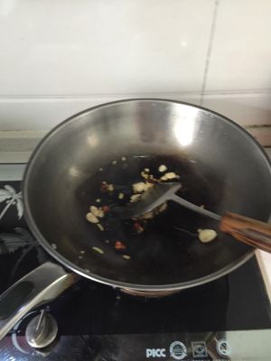 锅中加入油再加入姜丝 蒜泥 小尖椒煸炒出香味