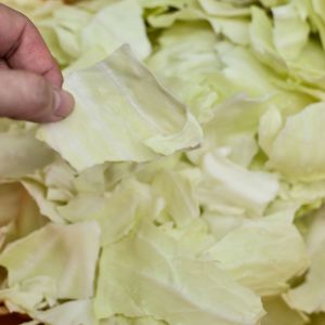 炒至微糊放入包菜,炒熟后加盐和蚝油拌匀。
