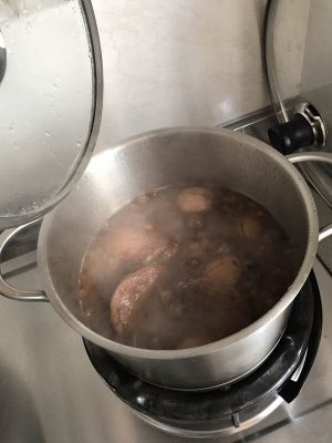 放入香菇和剥好皮的鸡蛋,小火炖30分钟,加盐再微火炖10分钟。(中间可以看看锅里的汤,如果汤太少可以适当添点儿水,以防干锅)