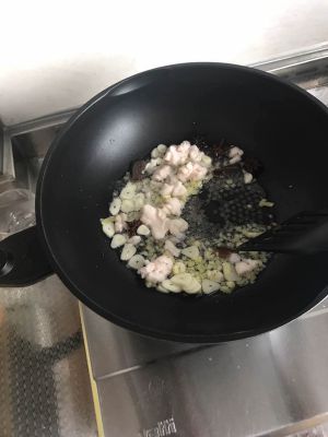 大蒜洋葱等配料炒香