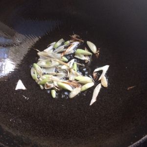 锅中放油,鸡旦打散加少量盐和几滴凉开水,先将鸡蛋炒好盛出。