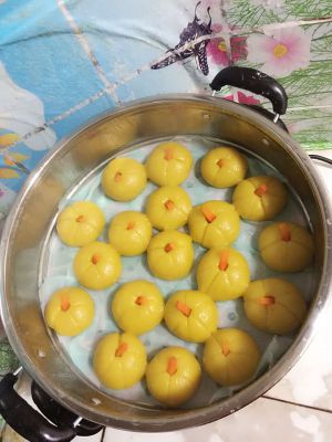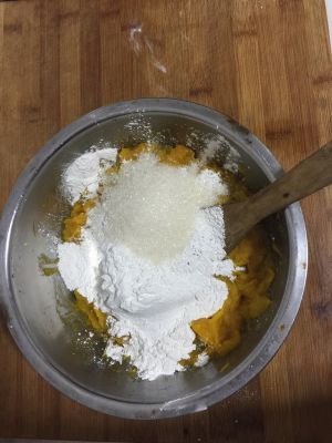 先把南瓜煮烂,然后和糯米粉一起搓。然后就捏成你喜欢的图案