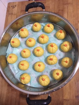 揉成光滑的面团(注意不要加水在面团里,面团揉的要硬些不能太软了,太软会蒸塌下去的)~