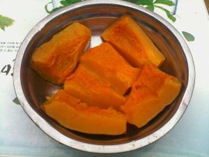南瓜去皮去籽,上笼蒸熟后放凉。