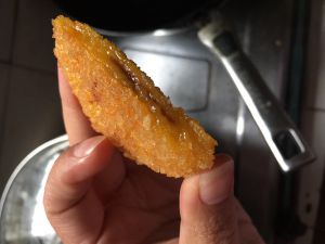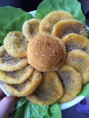 收口然后放掌心里拍扁,放面包糠里滚一滚,弄了太多一次吃不完可以把生胚放冰箱冷冻,以后想吃随时可以拿出来一炸。