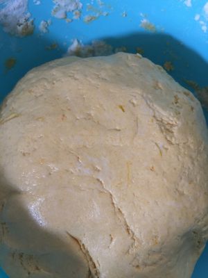 往南瓜泥里加入糯米粉和白糖,揉捏均匀。切记要用老南瓜,水分少。南瓜饼才会浓郁,也才会软糯。