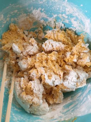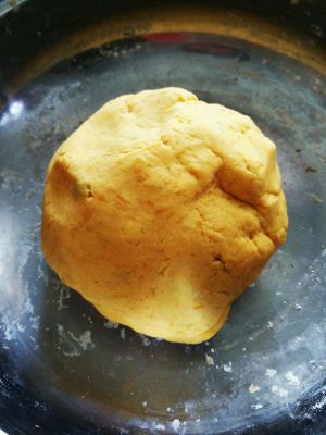 南瓜蒸熟,放凉加入糯米粉揉成图片色