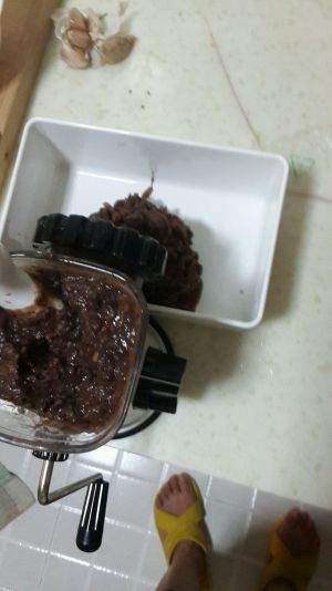 第二步,用绞肉机将红豆绞烂成豆沙状
