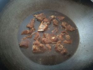 在干净的锅中放少许水,放入糖用中火慢慢熬至变色,再加一些水、盐、冰糖、醋、少许老抽,继续用中火熬。