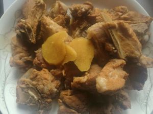 油锅烧热到150度,肉排入油前加少量生粉捏一下,入油炸四分钟,捞起。