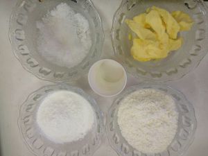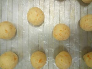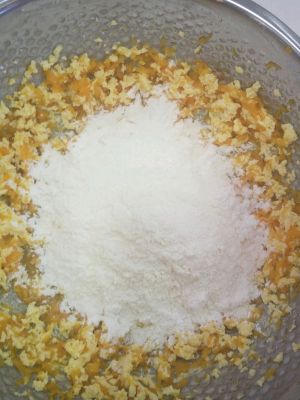 南瓜去皮蒸熟压成泥,加入糯米粉和低筋面粉和成面团。(因为我的南瓜是板栗南瓜,水分较少。如果含水量大的话,糯米粉与南瓜的比例就是1:1。)