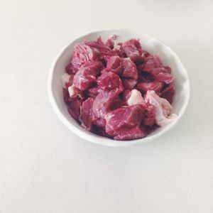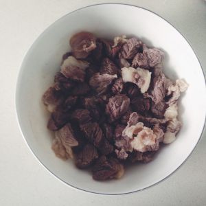 牛肉清水泡二个小时!洗干净后切成小块
