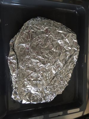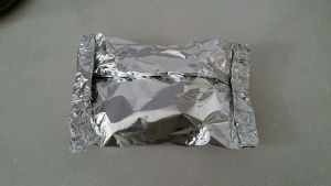 第二天将腌制好的羊排放在锡纸包裹严实