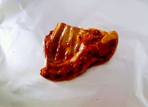 嫩羊排一斤 化开洗干净,把大喜大烤肉酱和羊排充分拌匀,放置20分钟。