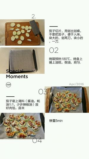 烤箱预热220度,入烤箱烤10到15分钟,茄子软了出炉,再撒点葱花,辣椒末,蒜末,最后撒点烧烤干料。