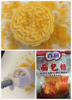 把馅料包入饼坯中^ _ ^外面裹上一层面包糠。