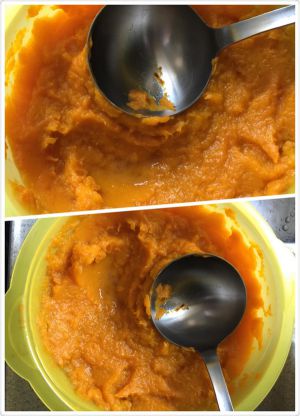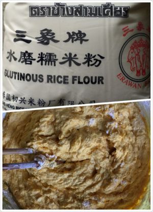 磨好的糯米粉倒入南瓜泥,也可买现成的糯米粉。