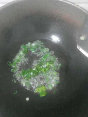 热油,放葱花,葱花下锅后翻两下,接着放土豆儿