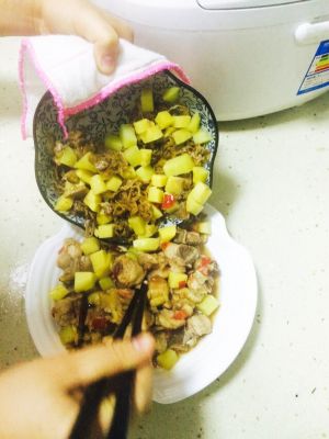美味出锅!倒入另外一个大盘子里翻拌一下,这样能更均匀的入味;(注意:电饭煲跳到“保温”程序后别着急打开,再焖10分钟再开锅盖,这样味道更好哦!)
