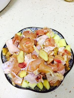 因为两个人吃,只买了半只鸡,切成小块,如果不要太油的话。就把部分肥的鸡皮撕下来扔了