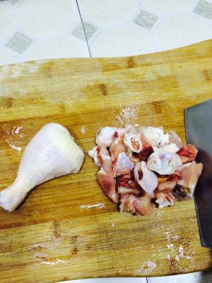 将鸡腿洗净,用刀剁成小块,这样更容易入味;