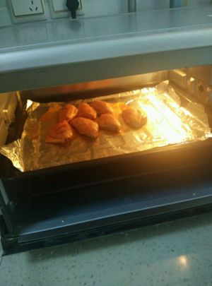 1⃣️把腌好的鸡翅放进烤盘里烤,涂上一层薄薄的的蜂蜜。 2⃣️把烤箱调280度20分钟预热 3⃣️把装好鸡中翅的烤盘放入预热好的烤箱了,将烤箱再调到210度烤20分钟即可完成(中途12分钟后需要翻另外一面也涂上薄薄一层的蜂蜜后,直接放回烤箱里烤就可以了。)