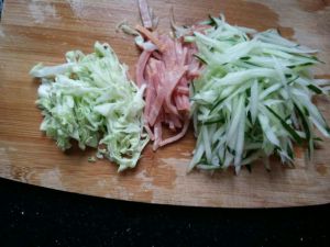 黄瓜,卷心菜,培根全部切丝