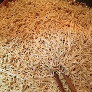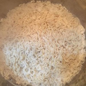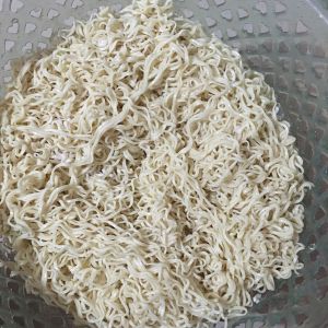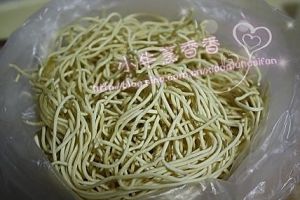 处理材料的过程中,将面条煮好,捞起放入冰水,再捞起沥干水分;