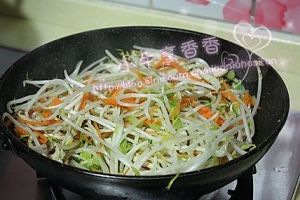 依次倒入各种配料翻炒,加适量蚝油、生抽、盐调味;