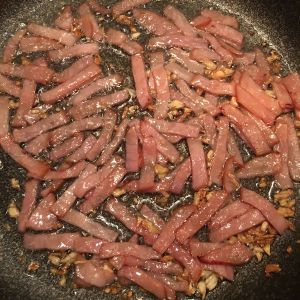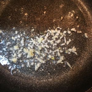 锅中再加入适量油,大火烧热下入蒜末煸出香味。