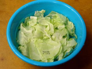 手撕包菜,清水浸泡5分钟,捞出沥干水;