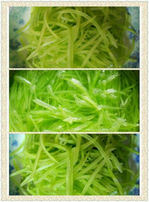 莴笋擦丝(或切丝),入沸水中焯水一分钟捞出沥干水份