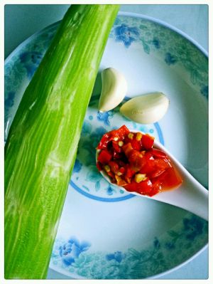 莴笋去皮洗净切丝。蒜切碎,小红椒切圈。