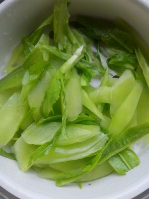 锅中烧水,水开后倒入莴笋丝,过水30秒。如果不怕生味的话,这一步可以直接省略。