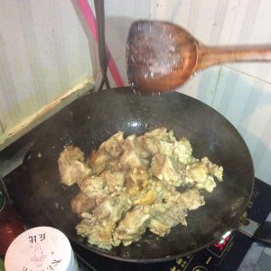 加入肉翻炒。把肉炒上颜色
