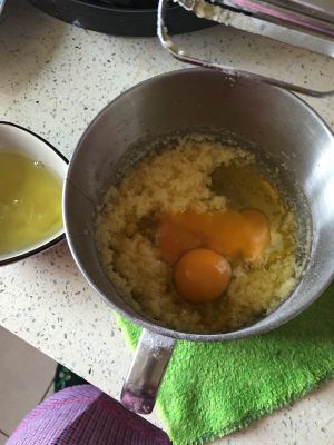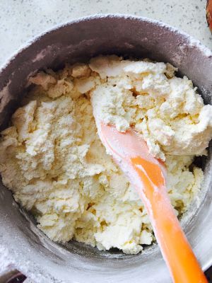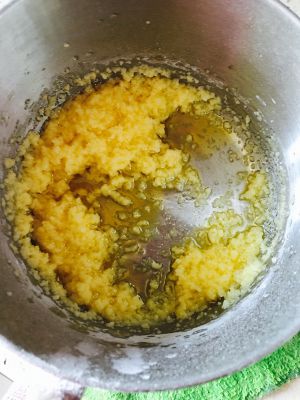 黄油融化后,加入糖粉,用打蛋器打成这幅模样