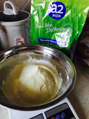 加入面粉 糖 水 植物油 酵母 。。。和面!!