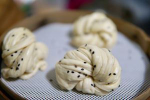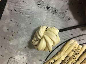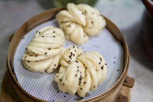 再将筷子横向扭一圈,拧到底部压住左手端,抽出筷子,花卷完成。(不会卷的拿筷子转两圈大概成型就行,这个只会影响外观,不影响味道)