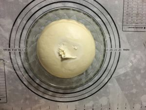 发酵至两倍大(温度高一小时左右,也可以用冰箱冷藏发酵一晚,总之一定要发酵好。)