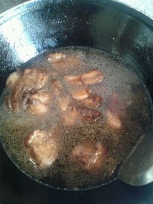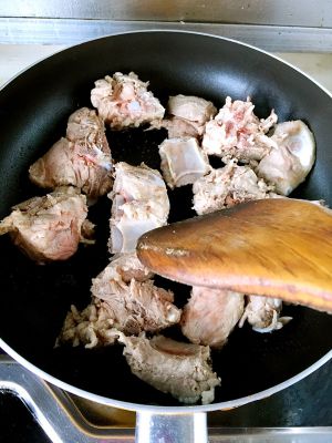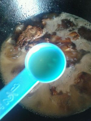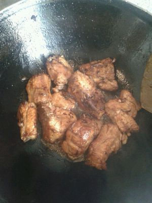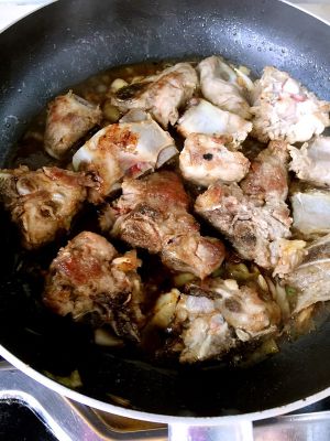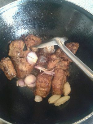 油烧热,放入排骨炒,放入红烧酱油继续炒。