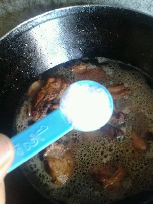 倒入开水没过排骨,盖上锅盖转小火炖40分钟