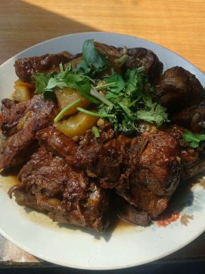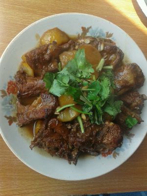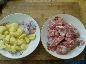 排骨是卖家切好的一定要清洗干净,土豆切小块(熟的快),葱、姜切片(我用的毛葱头)。