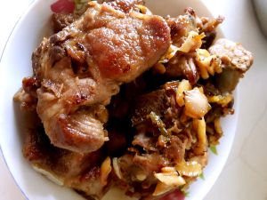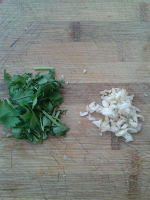 待汤汁不是很多时把蒜末放里,再放少许味精。出锅前放一点小葱也会增加一些香味。
