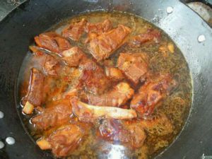 炖煮。加水冷热均可至没过排骨,加入准备好的姜、葱、蒜、八角、花椒,大火烧开会转小火慢炖,盖上锅盖炖一个来小时,五十分钟时就已经烂了,喜欢吃软的朋友可以随个人喜好延长时间。中间记得翻几次。