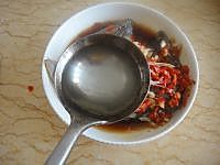 再倒入两勺料酒,一勺食醋,少许鸡精,调成汁淋在腌好的鱼头上。