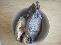 买回来的鱼头洗干净,如果卖鱼的可以帮你剖两半那就最好了。