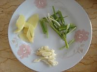 放入料酒和姜丝,腌大概半个小时,多一会更好。料酒和姜丝尽量多一点,没关系。