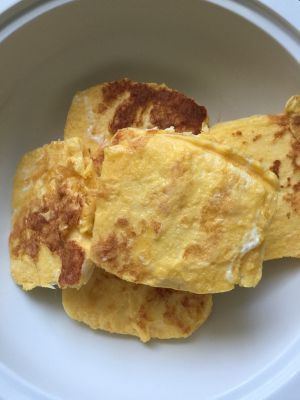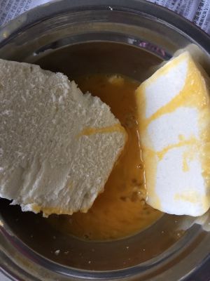 馒头切开来,放入蛋液中裹匀