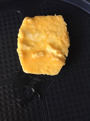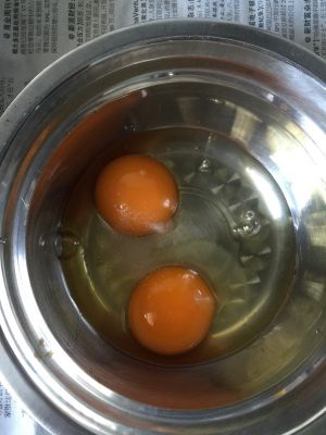两个鸡蛋打成糊状,加点盐