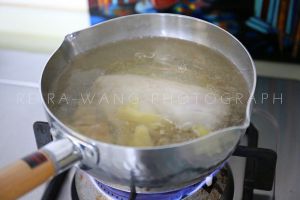煮沸持续大火几分钟,浮沫撇干净后,冲洗一下,保留姜葱花椒,重新加水煮沸后转小火,煮20分钟左右。(根据肉的大小,小伙伴期间可以用筷子戳一下肉厚的地方观察一下,煮久了肉质容易太软烂。)